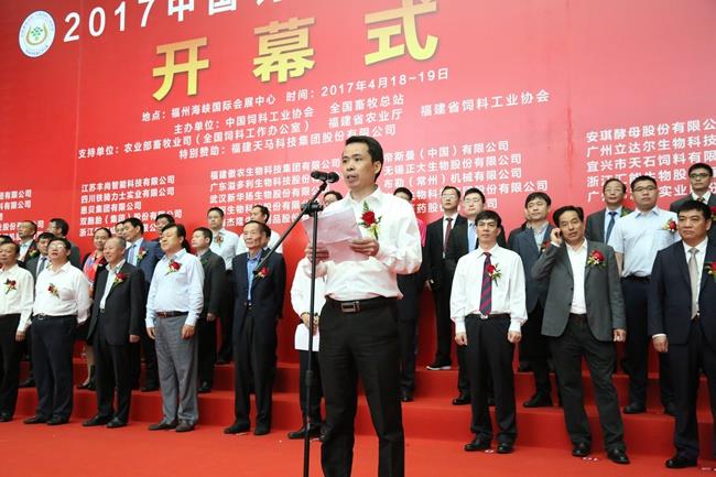 天馬科技訊 4月18日-19日,由中國飼料工業(yè)協(xié)會、全國畜牧總站主辦,福建天馬科技集團股份有限公司(以下簡稱“天馬科技”)特別贊助的行業(yè)盛會——2017中國飼料工業(yè)展覽會暨畜牧業(yè)科技成果推介會在福建省福州海峽國際會展中心隆重舉行。農(nóng)業(yè)部副部長于康震,農(nóng)業(yè)部原副部長、中國飼料工業(yè)協(xié)會顧問高鴻賓,中國飼料工業(yè)協(xié)會會長、中國工程院院士李德發(fā)等領(lǐng)導,以及包括天馬科技、海大集團、大北農(nóng)、新希望六合等上市公司在內(nèi)的近400家國內(nèi)外公司參展和數(shù)萬名客商代表、行業(yè)人士參加展會。中國飼料工業(yè)協(xié)會副會長單位、本屆唯一的特別贊助單位天馬科技,以安全、高效、環(huán)保的特種水產(chǎn)飼料及技術(shù)解決方案亮相此次展會,吸引了來自全國各地的客戶,上下游合作伙伴及同行的目光。中國飼料工業(yè)協(xié)會副會長、天馬科技陳慶堂董事長應邀出席展會,并在4月18日舉行的展會開幕式上代表全國飼料企業(yè)致辭。